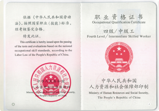 (職業(yè)資格證書內(nèi)頁(yè))
